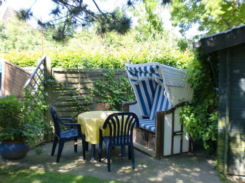 Ein großer Garten und eine eigene windgeschützte Terrasse laden